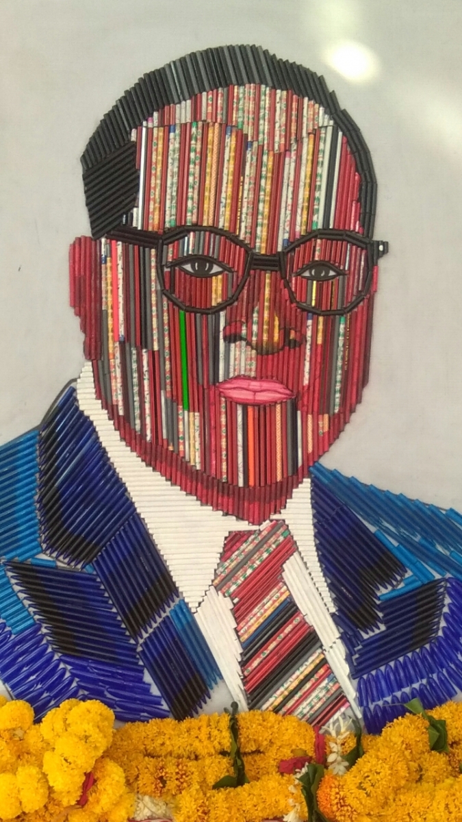 Beim Tee am Straßenrand treffen wir auf Sunny, der einen Eintrag im Guinness-Buch der Rekorde hat. Er hat BR Ambedkar, den Begründer der indischen Verfassung mit 300 Stiften abgebildet.