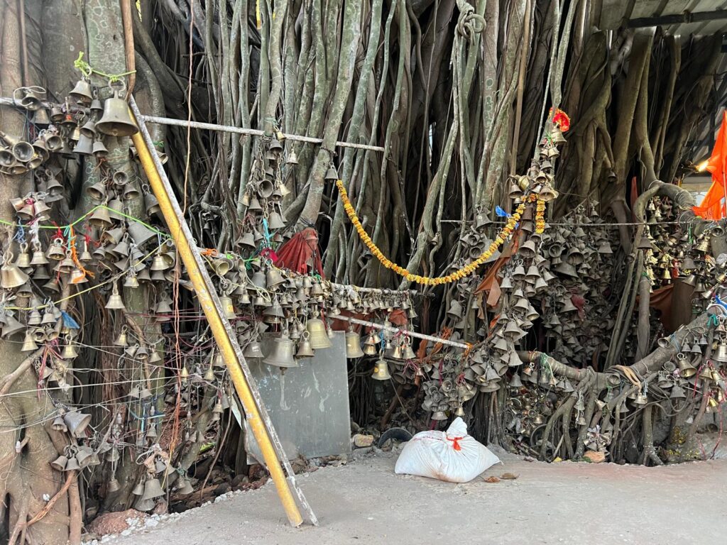 Gestern, am 5. Januar, bin ich bei minus 10 Grad und verschneiter Landschaft in Deutschland gestartet und werde heute Morgen mit 24 Grad am Flughafen in Goa empfangen. Auf dem Weg nach Sawantwadi, meinem ersten Stützpunkt, bringen wir eine Frau ins Krankenhaus, eines der größten an der Grenze Maharashtra/ Goa. Hier fällt der Blick auf einen großen Wunschbaum der besonderen Art: Frauen hängen Glocken auf, in der Hoffnung guter Hoffnung zu werden.